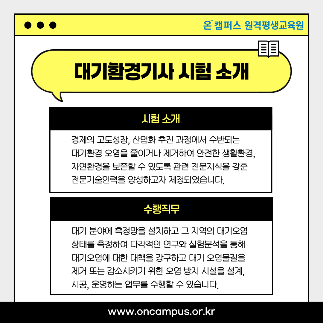 [국비지원] 한번에 끝내는 대기환경기사(필기+실기) 자격증 과정 안내
