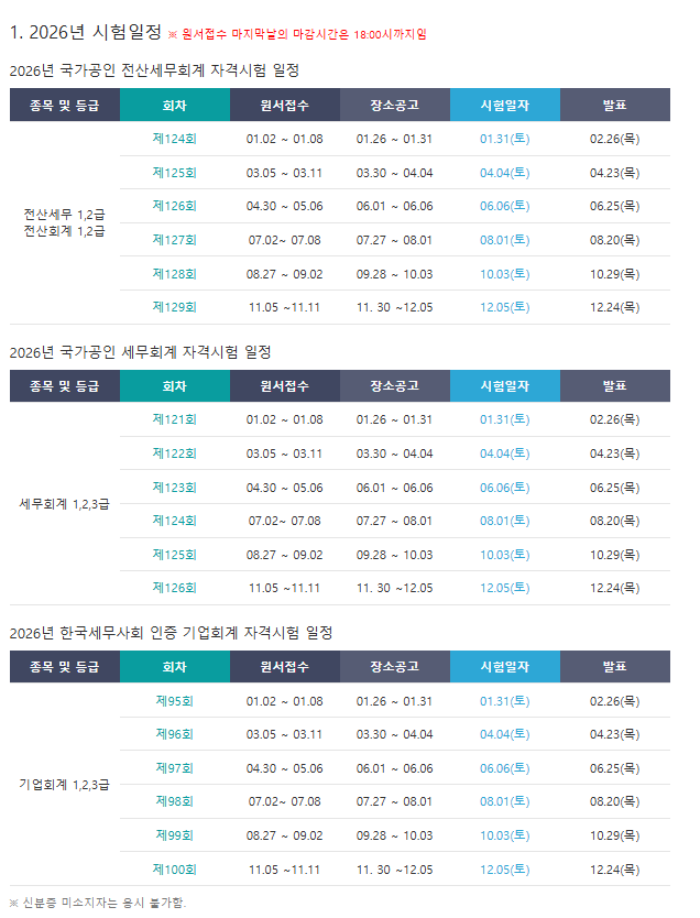 2025년도 한국세무사회 국가공인 자격시험 일정