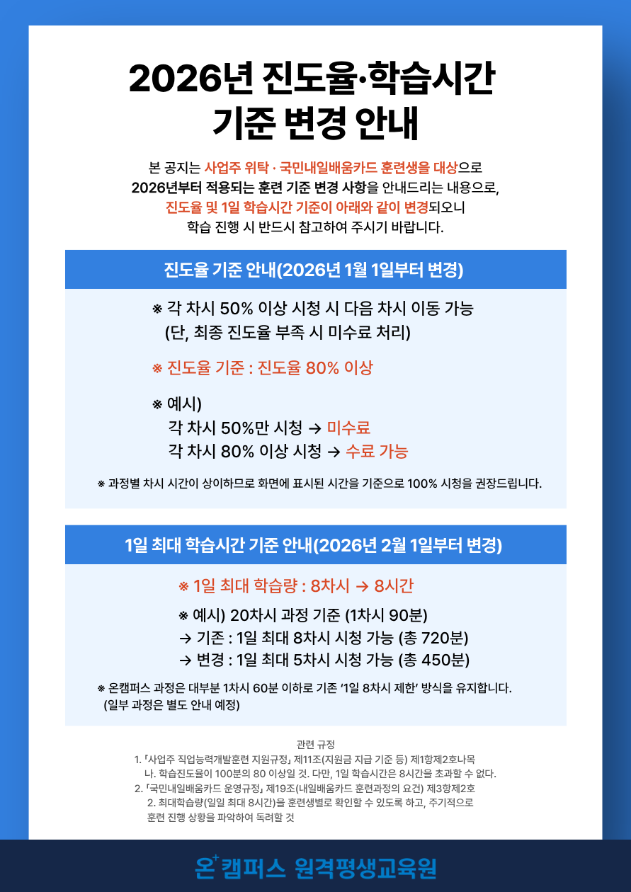 2026년 진도율 반영·학습시간 기준 변경 안내