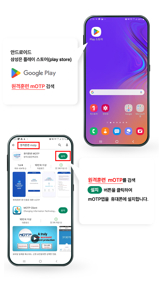 STEP 03 원격훈련 mOTP앱에서 생성된 OPT번호(6자리)를 인증화면에 입력합니다.
